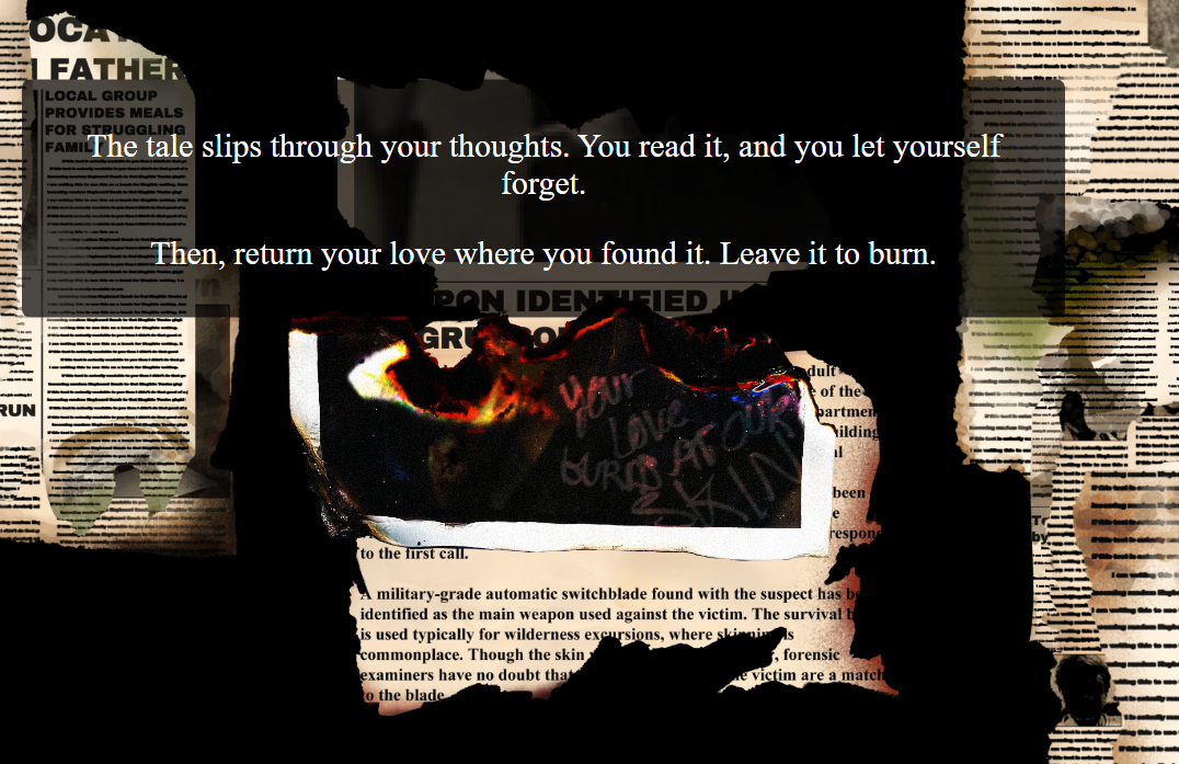 “The tale slips through your thoughts. You read it, and you let yourself forget. Then, return your love where you found it. Leave it to burn.”